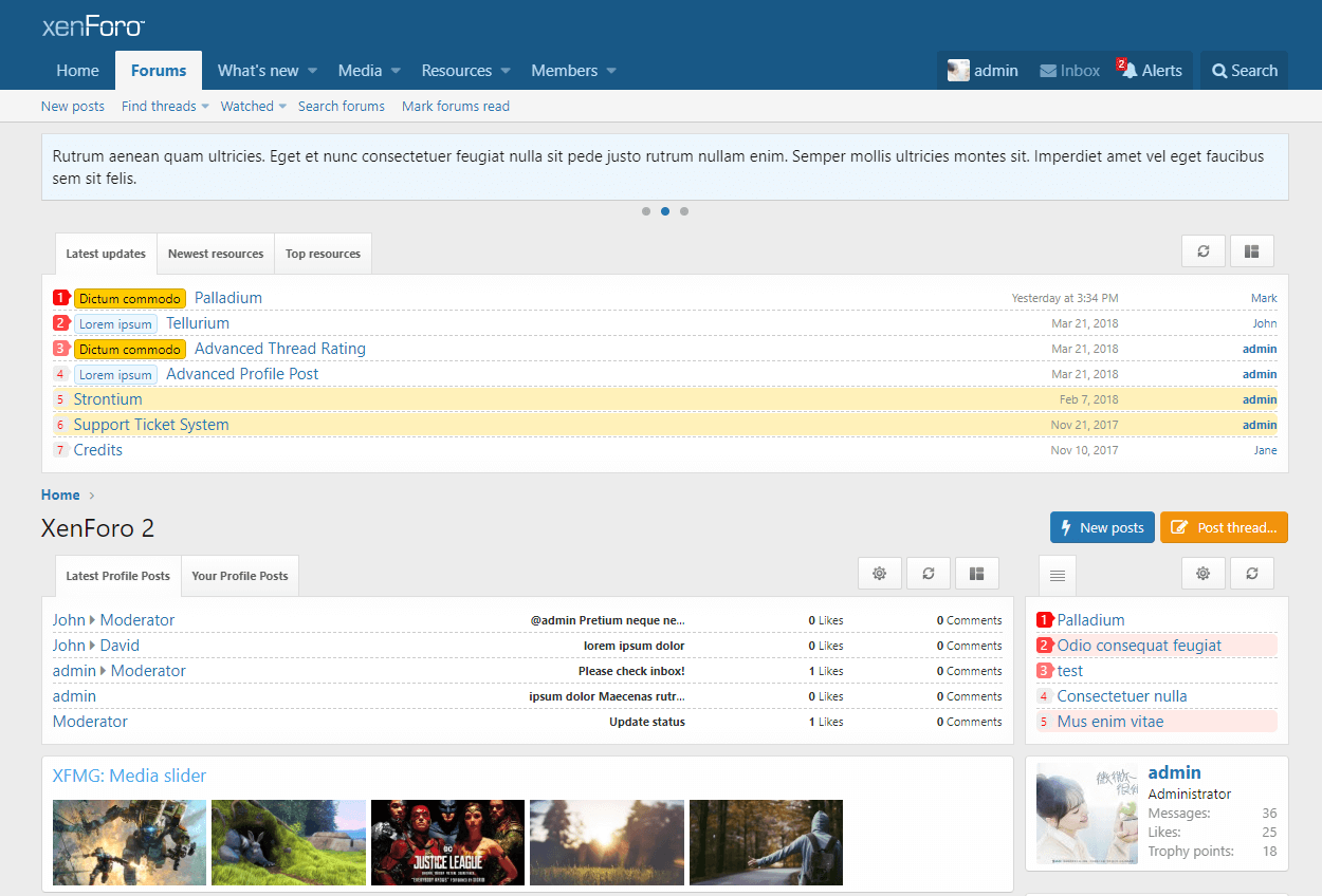 Существуют четыре основных объекта статистики: пользователи, темы, профили и ресурсы. Пользователи могут видеть большое количество статистических данных об этих объектах, таких как «Последние ответы», «Важные темы», «Лучшие ресурсы», «Самые загружаемые ресурсы», «Больше всего сообщений у пользователей», «Последние сообщения профиля» ... Это помогает пользователям поддерживать любые активные дискуссии и предлагать полезную информацию другим пользователям ,