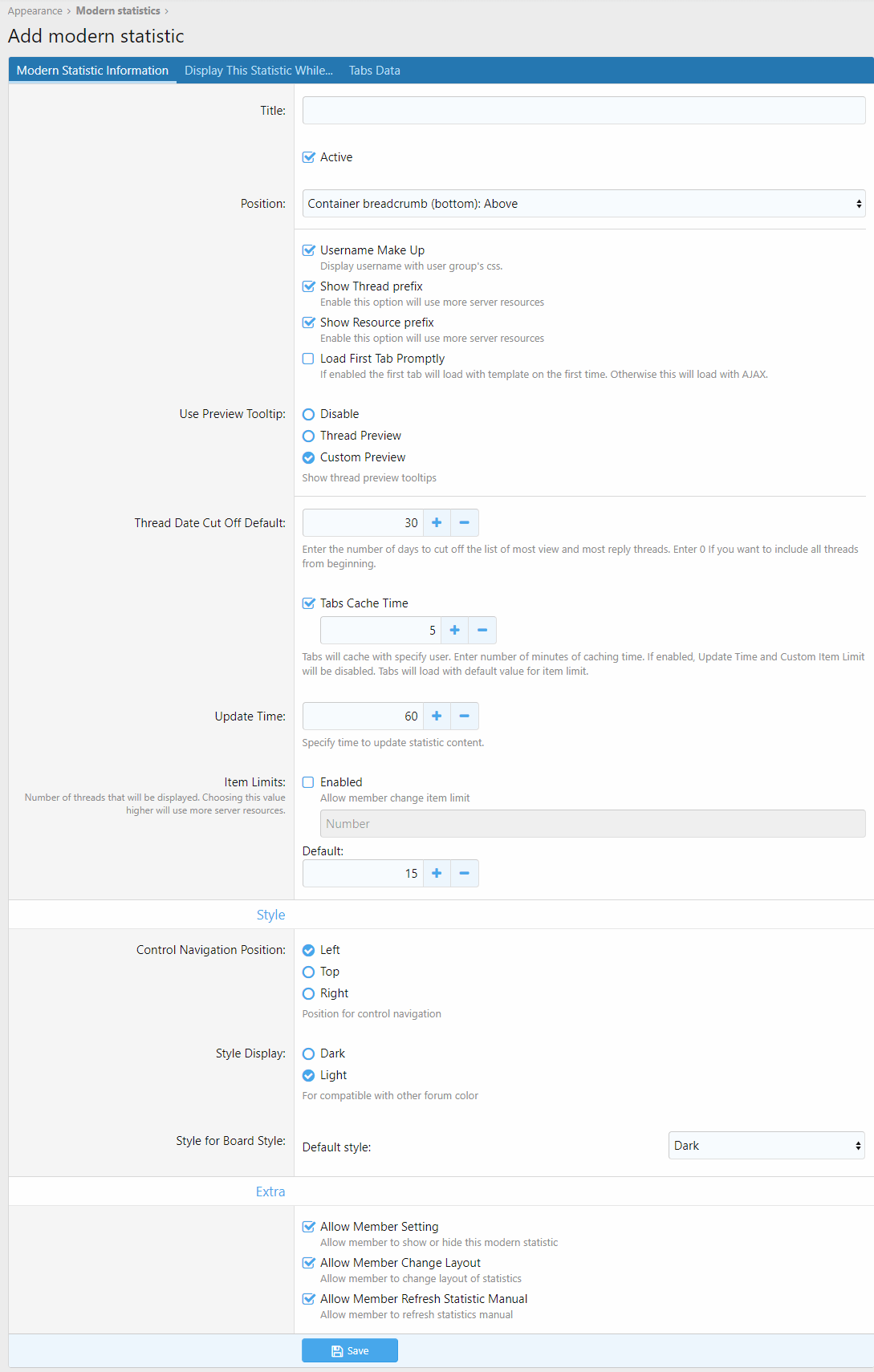 Плагин Modern Statistics предоставляет собой инструмент статистики на Вашем форуме. Пользователи смогут видеть и следить за популярными тенденциями или обновлять новейшую информацию форума.