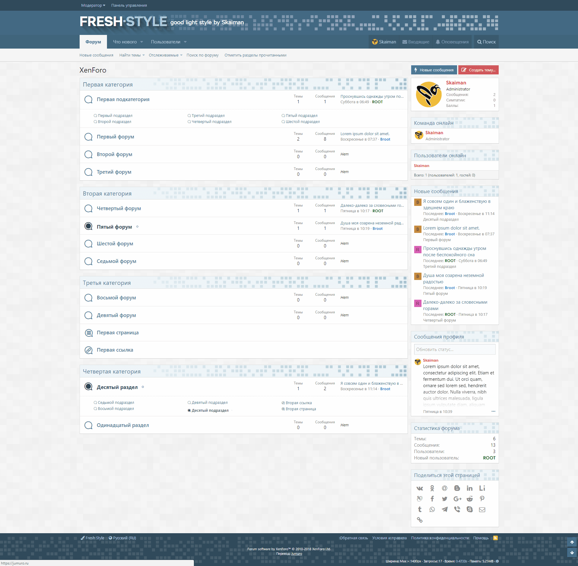 Светлый стиль. Устанавливать как дочерний дефолтного. Добавлено в настройки стиля, в цветовой палитре два дополнительных цвета. В настройках узлов, изменение цвета заголовков разделов, прочитанных и не прочитанных, включение анимированного индикатора не прочитанных разделов, включение иконок стиля.