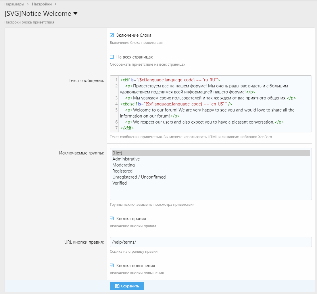 - Для сообщения можно использовать HTML и синтаксис xenforo