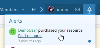 Оповещения о покупке для автора ресурса и участников команды. Также добавлена возможность для администратора получать уведомления по электронной почте о любых покупках/продлениях ресурса