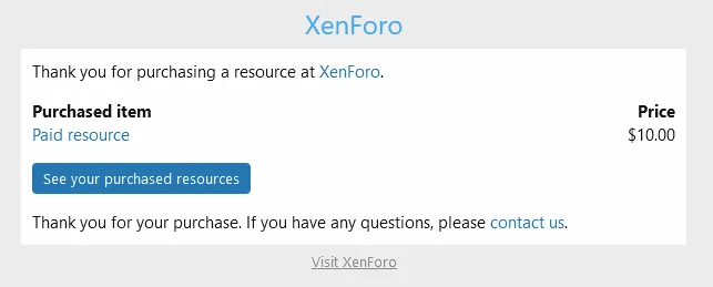 Добавляет новые типы ресурсов — платные загрузки файлов и платные внешние URL-адреса для скачивания. Интегрируется с платёжными системами XenForo.