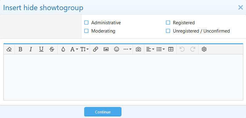 Дополнение предоставляет пользователям возможность скрывать свой контент, используя BBCode.
