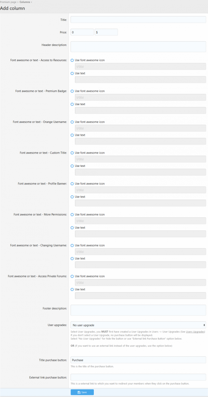 Данное дополнение позволит создать страницу на которой Вы можете показать все преимущество премиум подписок/повышений, благодаря гибкой настройке дополнения.