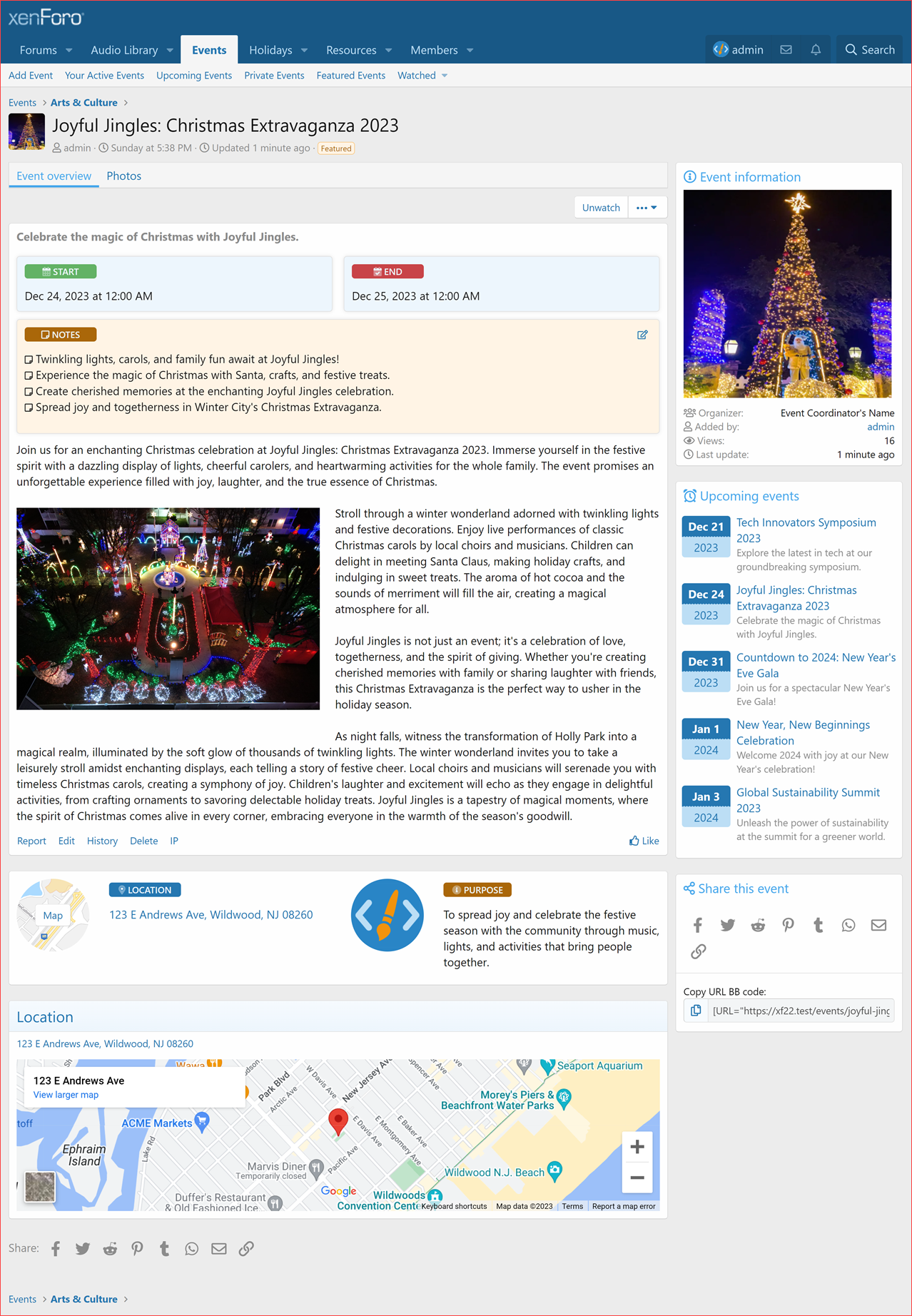 Дополнение Events Manager для XenForo 2.2!​