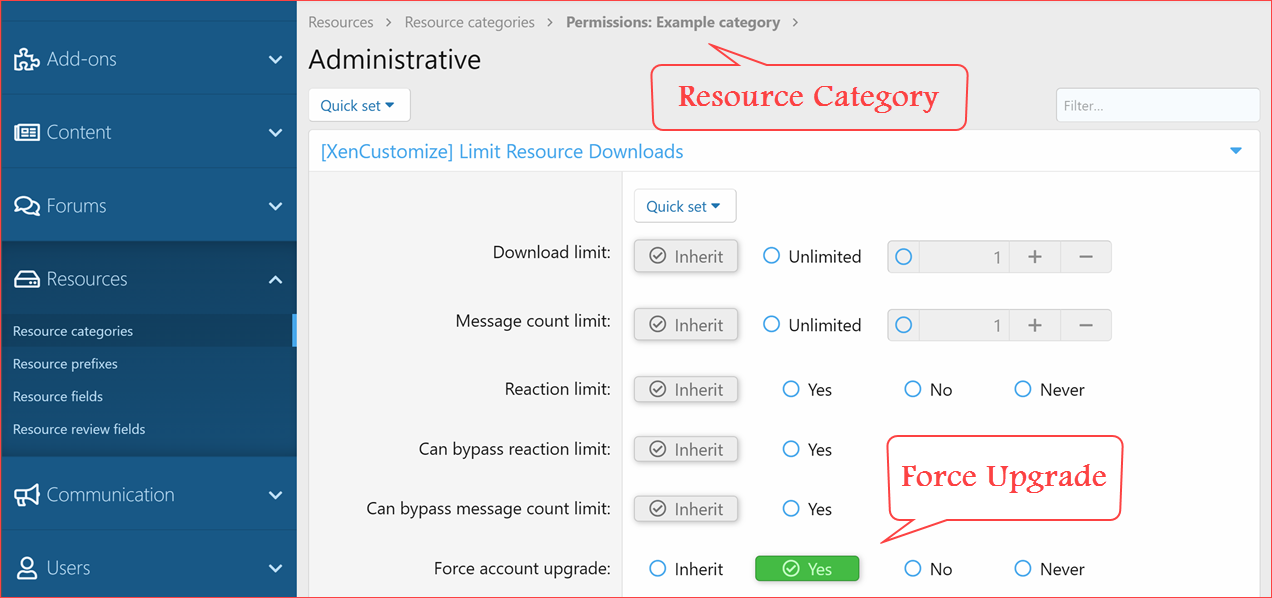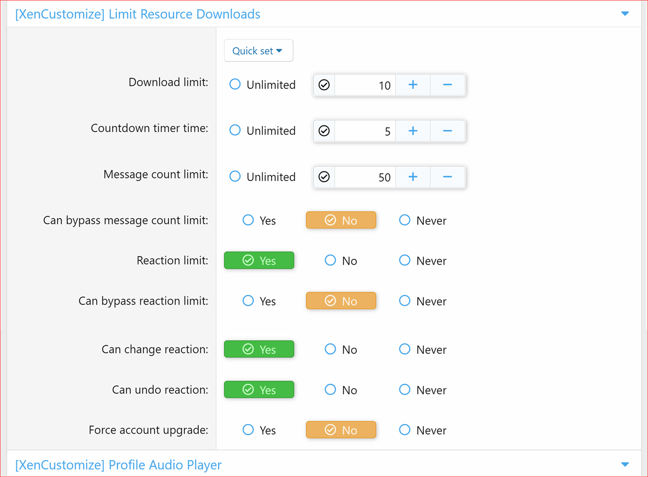 Дополнение ограничить загрузку ресурсов дает администраторам форума мощный контроль над загрузкой ресурсов, позволяя им устанавливать различные ограничения, такие как:- Ежедневные ограничения на загрузку