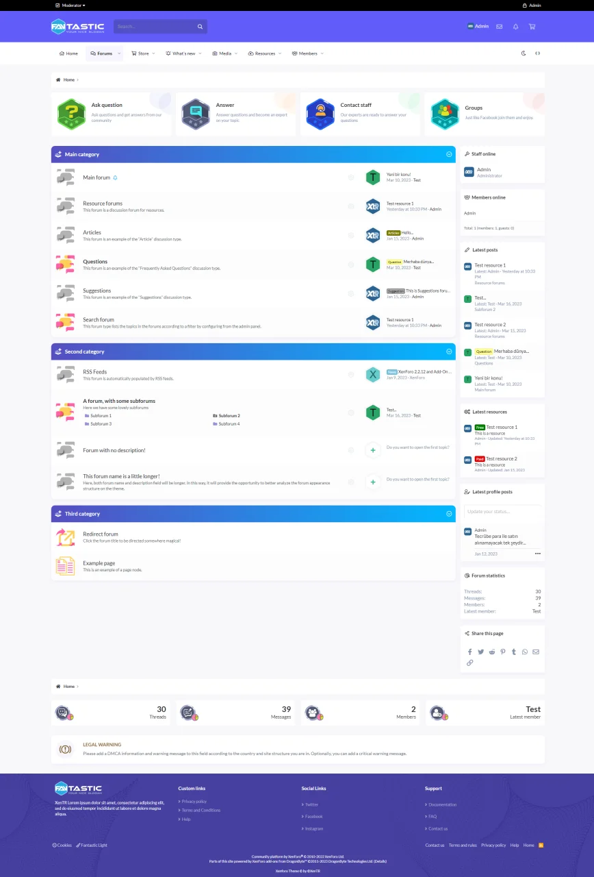 Fantastic Pro предлагает такие функции, как области быстрого доступа и приветственные сообщения для гостевых пользователей. Эти функции помогают пользователям легко адаптироваться к сайту и быстро привыкнуть к нему. Кроме того, он предоставляет пользователям более функциональные возможности, такие как настраиваемая структура статистики форума и кнопки действий в областях узлов.