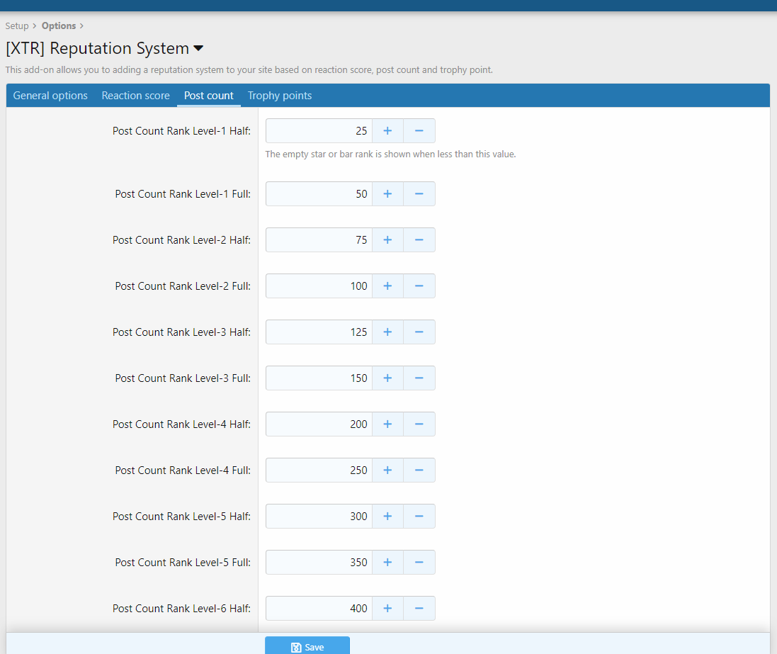 Это дополнение позволяет вам добавлять систему репутации на ваш сайт на основе оценки реакции, количества постов и трофейных очков.