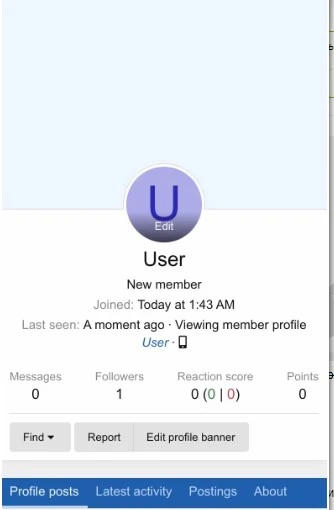 • Позади кликабельный (если это профиль визитора) баннер, ведущий по ссылке редактирования самого баннера.